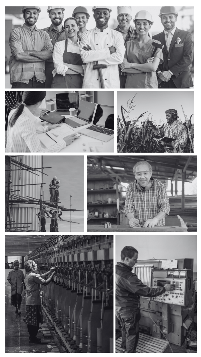 Meaning effort, enterprise, the act of rising. It is not a company name. It's a salute to those who make the world move — through work done with heart.